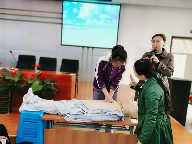 赵慧卿、常海哲指导学生实践心肺复苏术