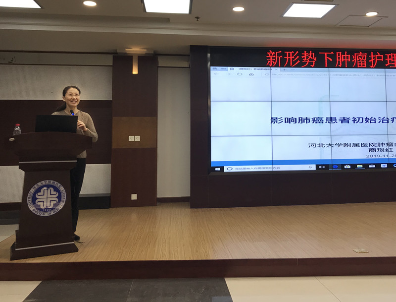 近日,我院肿瘤科在北院六楼会议室举办新形势下肿瘤护理新进展培训班。我院肿瘤科主任臧爱民出席会议并致辞,护理部副主任冯佳、高飒,肿瘤科科护士长薛桂花、田会平及全院相关科室护士参加会议。北京协和医院临床营养科主治医师康军仁、我院肿瘤内科副主任商琰红和乳腺外科主任医师陈鹊汀分别从PICC相关上肢静脉血栓、肺癌的诊疗及全生命周期乳腺健康常识等方面进行了授课。