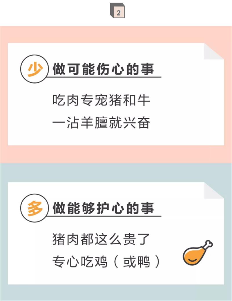 解释:白肉(如鸡鸭、鱼虾等)脂肪含量少、不饱和脂肪酸含量相对充足,是一种非常健康的食材,特别是深海鱼(如三文鱼、鲱鱼等),因富含ω-3脂肪酸,还可减慢冠状动脉粥样硬化进展,有效降低心血管疾病发作和死亡风险,建议每周吃2次鱼,但每天肉类总摄入量最好不超过200g。