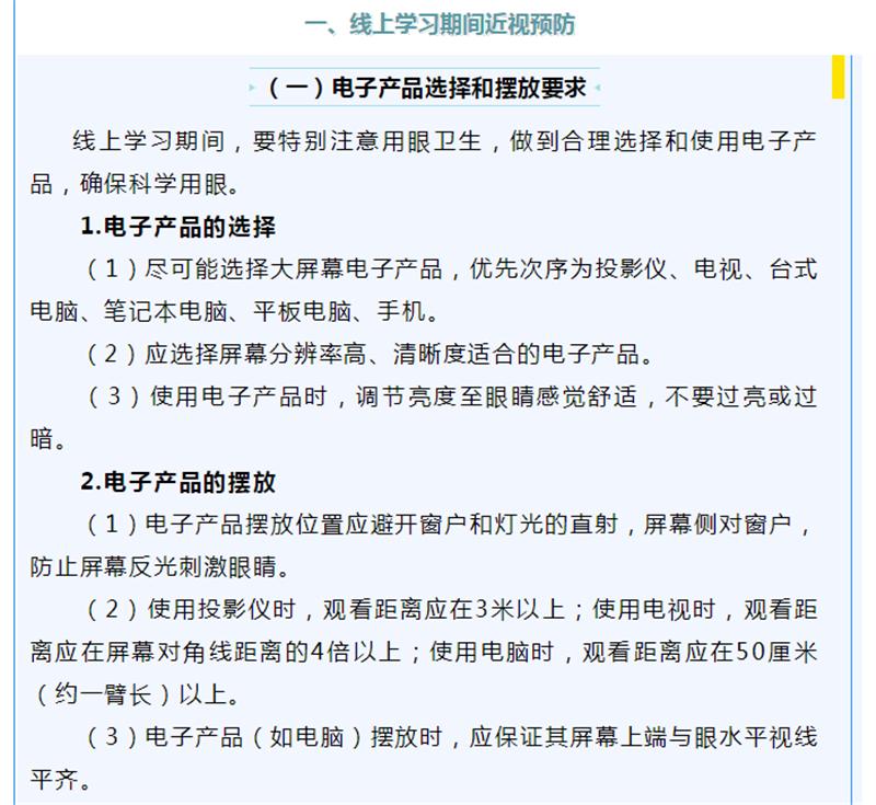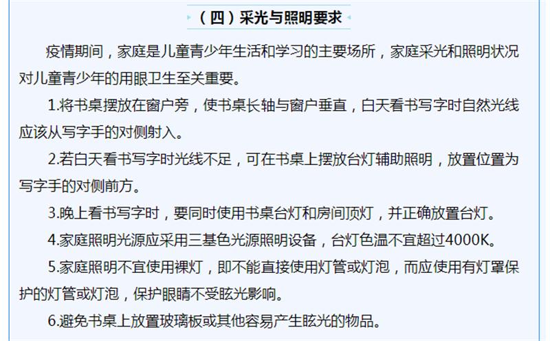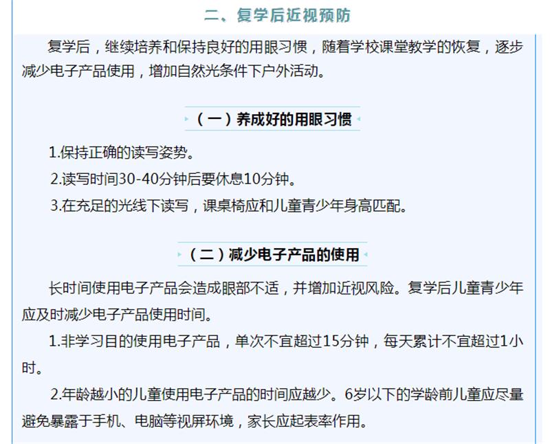 因新冠肺炎疫情,全国各级各类学校延迟开学,儿童青少年正在经历一个特殊的假期。疫情期间,儿童青少年户外活动减少,电子产品使用过多,增加近视发生和进展的风险。为指导新冠肺炎疫情期间儿童青少年近视预防,国家卫生健康委组织安徽医科大学公共卫生学院、北京市疾控中心等相关专家,制定了儿童青少年新冠肺炎疫情期间近视预防指引。