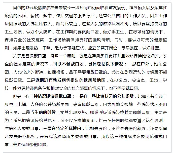【国务院联防联控机制权威发布会系列问答】低风险地区是否有必要全天佩戴口罩?