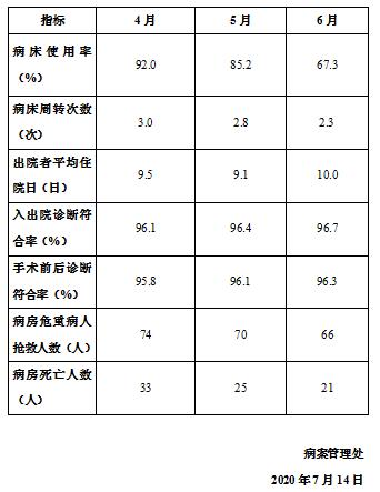 河北大学附属医院2020年第二季度医疗质量信息公开表