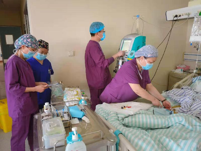 近日,我院重症医学科北院区成功为肝脏衰竭患者实施血浆置换治疗,标志着我院北院区重症治疗水平再上新台阶。2020年6月,因患者治疗需要,我院重症医学科北院区引进床旁血液净化机器,在科主任和护士长的组织下,重症医学科北院区全体医护人员进行了系统的理论学习和操作培训,逐步掌握了血液净化技术,并开展了多例床旁血液滤过治疗,成功救治了多位肾脏衰竭患者。