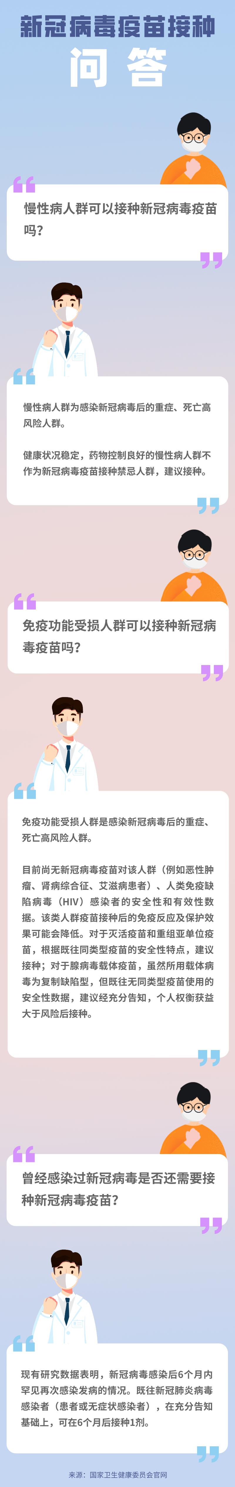 慢性病人群和免疫功能受损人群可以接种新冠病毒疫苗吗?曾经感染过新冠病毒是否还需要接种新冠病毒疫苗?