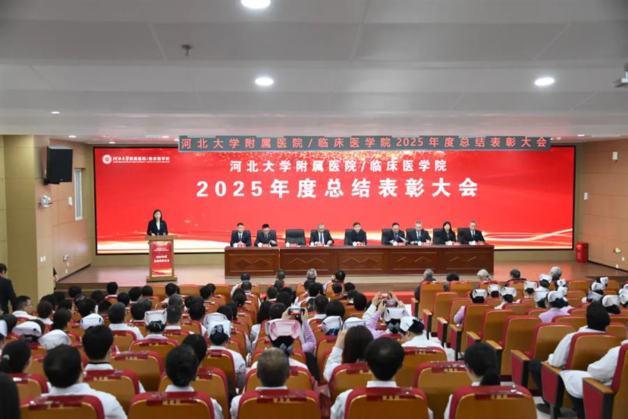 2月9日下午,我院2025年度总结表彰大会顺利举行。河北大学党委常委、副校长王川,医院党委书记程树杰,党委副书记、院长李靖华,纪委书记齐文杰,副院长杨凯艳、杨季红、于占彪、韩喆出席大会。医院中层干部及受表彰职工代表参加会议。大会由副院长殷小平主持。