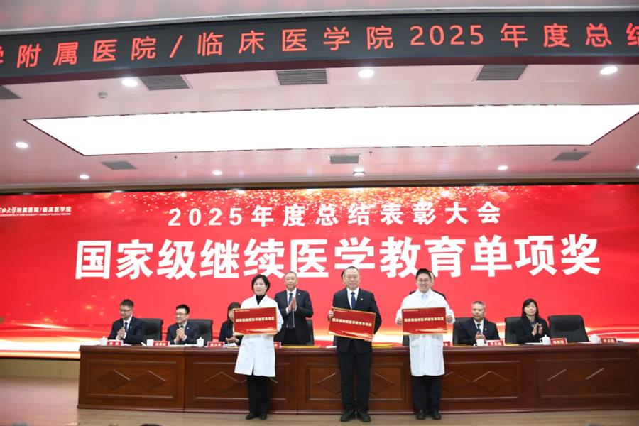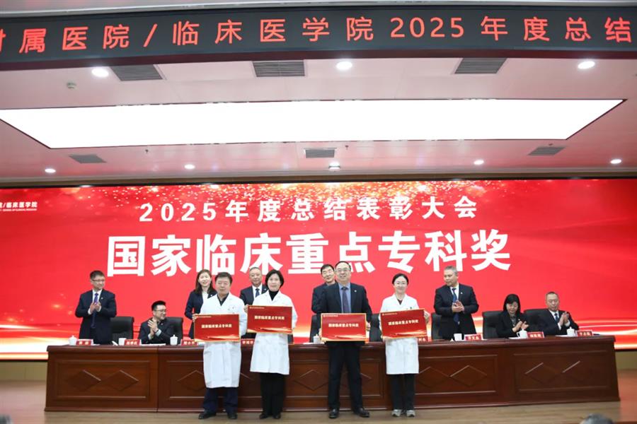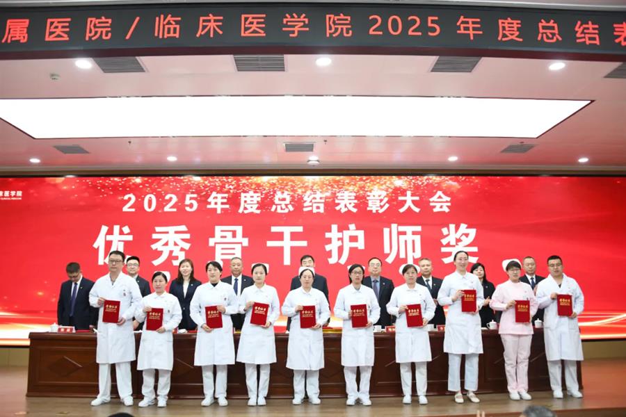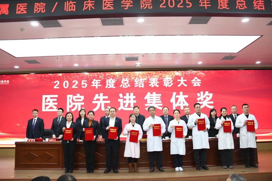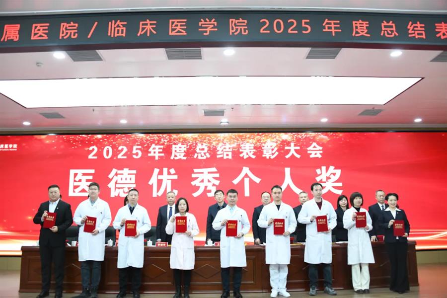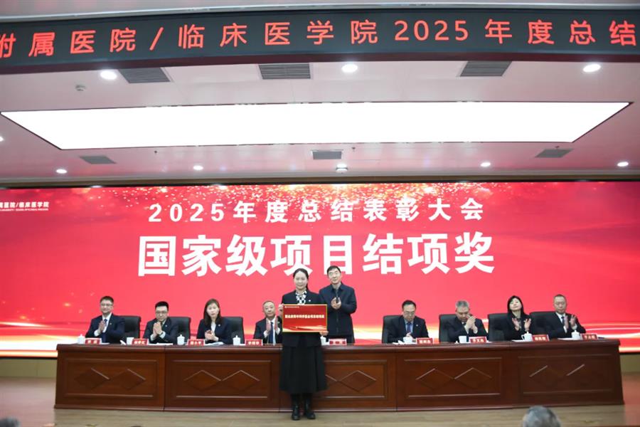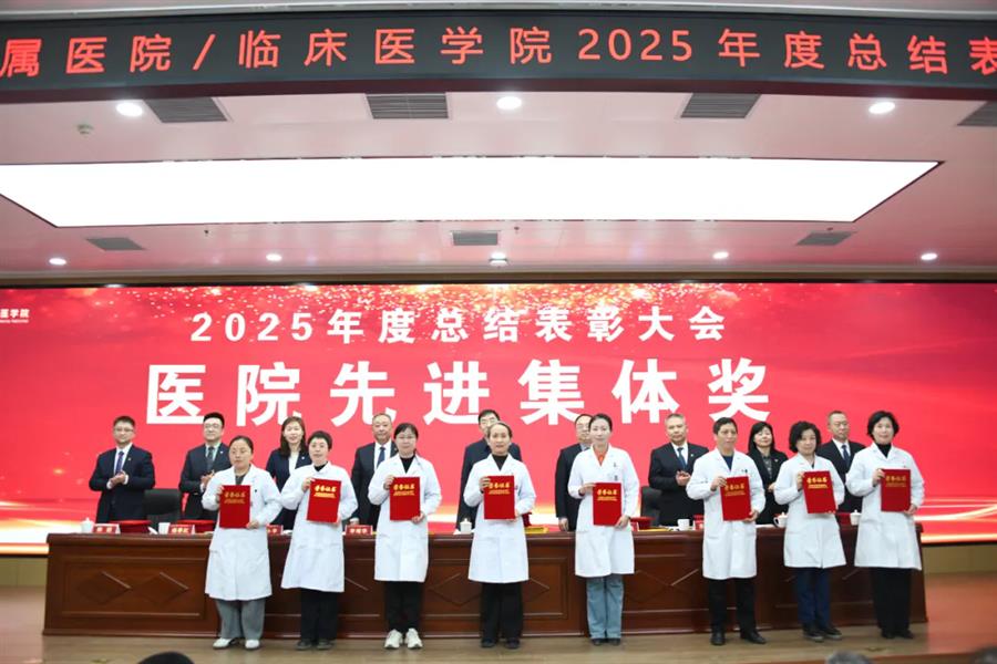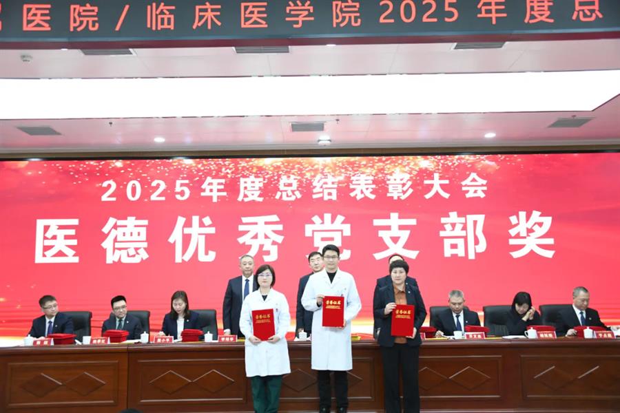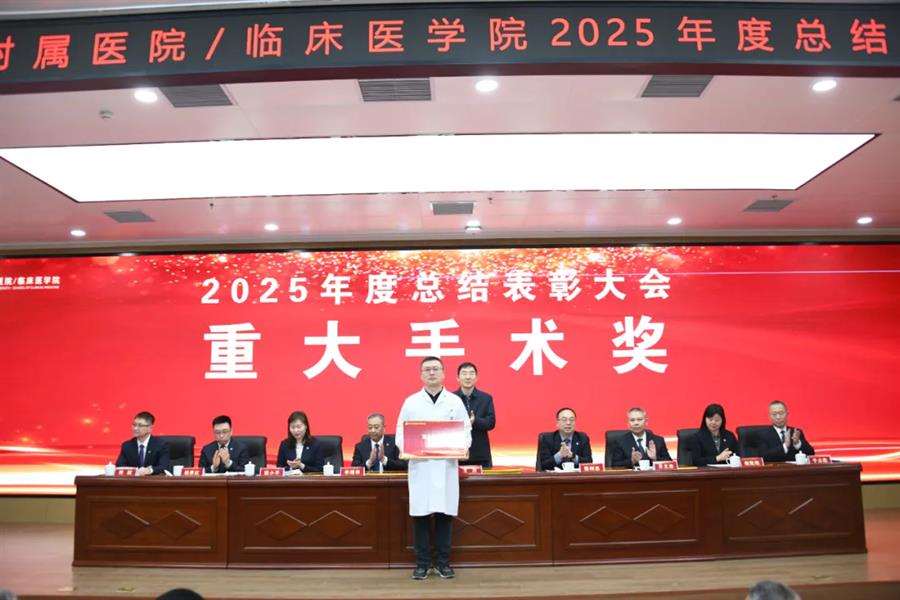 王川代表学校党委向受表彰集体和个人表示祝贺,并向附属医院全体职工过去一年的辛勤付出致以敬意和感谢。他指出,2026年是“十五五”规划开局之年,附属医院作为学校医学教育、临床医疗、科技创新和社会服务的关键载体,肩负着重要使命。他希望医院未来继续坚持党建引领,确保办学治院的正确方向;要聚焦内涵建设,不断提升医院核心竞争能力;同时应深化医教研协同,以高质量发展助力学校“双一流”建设。他期望全院干部职工进一步提振干事创业的精气神,凝聚服务大局的正能量,强化狠抓落实的执行力,以实干笃行扎实推进医院各项事业再上新台阶。