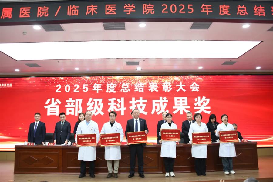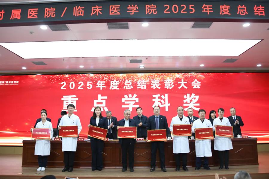 程树杰代表医院党委向受表彰的集体和个人表示祝贺。他围绕医院2026年重点工作强调,全院上下必须坚持党建为魂,夯实发展根基,深耕清廉沃土,把牢前进方向;必须坚持质量为核,优化服务效能,锐意守正创新,筑牢事业基础;必须坚持人才为要,凝聚团队合力,厚植文化品牌,激发内生活力;必须坚持公益为本,践行医者初心,厚植为民情怀,彰显使命担当。他号召全院职工紧密团结,以习近平新时代中国特色社会主义思想为指导,在学校党委坚强领导下,永葆笃实勤奋的睿气、自信图强的志气与自我革命的勇气,以锐意进取的干劲和扎实苦干的作风,全力守护人民健康,为助力健康河北建设贡献更大力量。